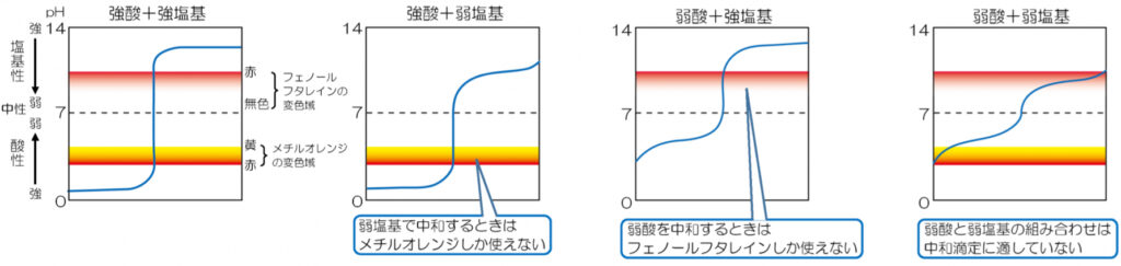 - フェノールフタレイン:\(\rm pH\;8.0\sim9.8\)