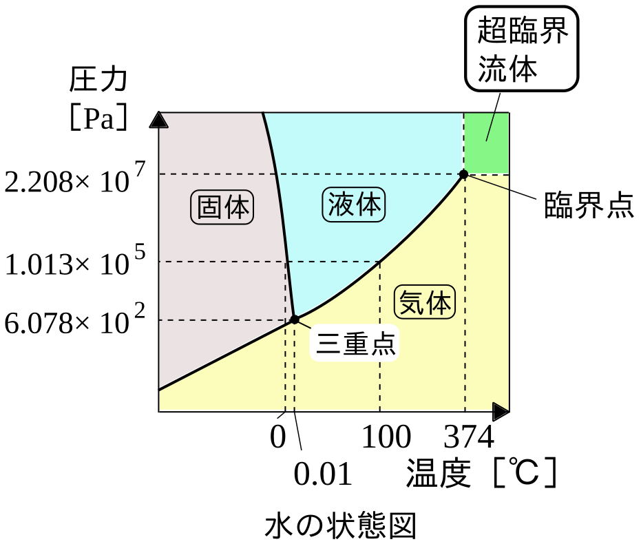 圧力と沸点・昇華点は単調増加,圧力と融点は単調減少の関係にある.