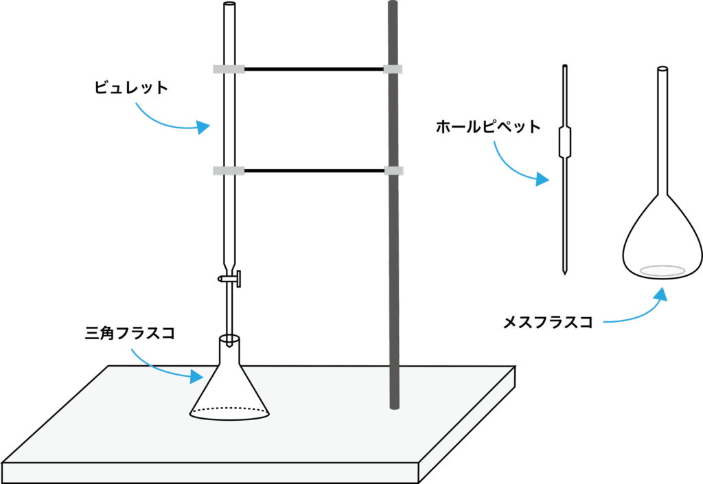 - 濃度不明の溶液を「ビュレット」で滴下する.