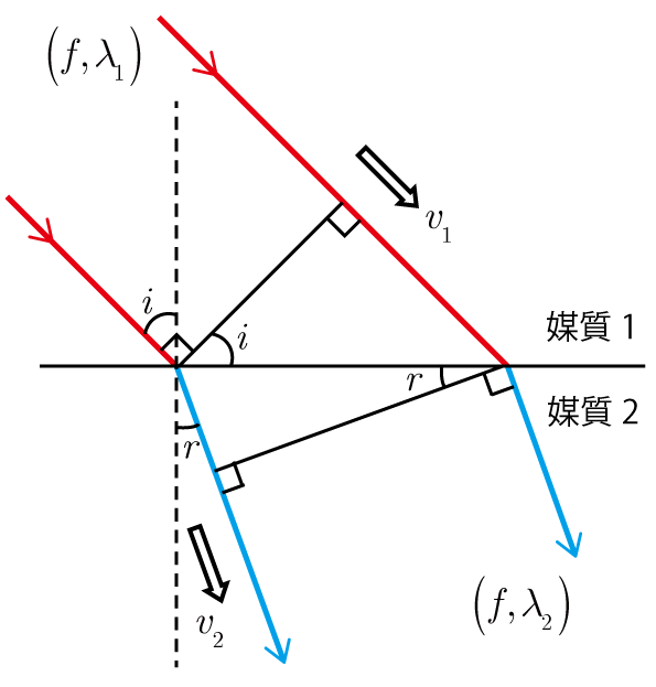 波の速さを \(v\),振動数を \(f\),波長を \(\lambda\) として,