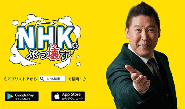 NHK党は、参議院議員2名を擁する「NHKをぶっ壊す!」でお馴染みの政党。